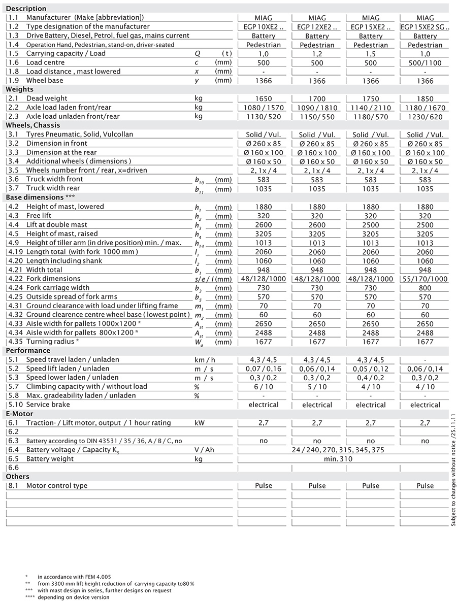 Electric Pedestrian Straddle Stacker Model EGP. Capacity 1,000-1,500 Kgs., Max. Lifting Height 2600 mm., Max. Travel speed 4.5 Km/h