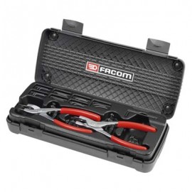 CIRCLIP PLIERS SET 20 PIECES FOR INTERNAL AND EXTERNAL CIRCLIPS Forged grip and joint, interchangeable tips (clamping screw). Pliers chrome-plated, plastic coated handles. With opening spring and step..