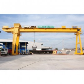 เครนสนามขาสูง 2 ข้าง คานคู่ (Gantry Cranes: Double Girder) เครนสนามขาสูง 2 ข้าง แบบคานคู่ มีความเหมาะสมใช้ติดตั้งบนพื้นที่กลางแจ้ง และในร่มใต้หลังคาโรงงาน สำหรับโรงงานที่ไม่ได้เตียมโครงสร้างเสาไว้เ..