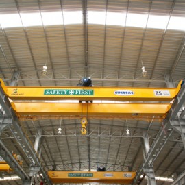เครนเหนือศีรษะ แบบคานคู่ (Overhead Crane: Double Girder) เครนเหนือศีรษะ แบบคานคู่ มีความเหมาะสมกับโรงงานอุตสาหกรรมที่ใช้งานยกน้ำหนักที่หนักมาก ซึ่งควรมีความกว้างใช้งานตั้งแต่ 10-30 เมตร และควรมีน้ำ..
