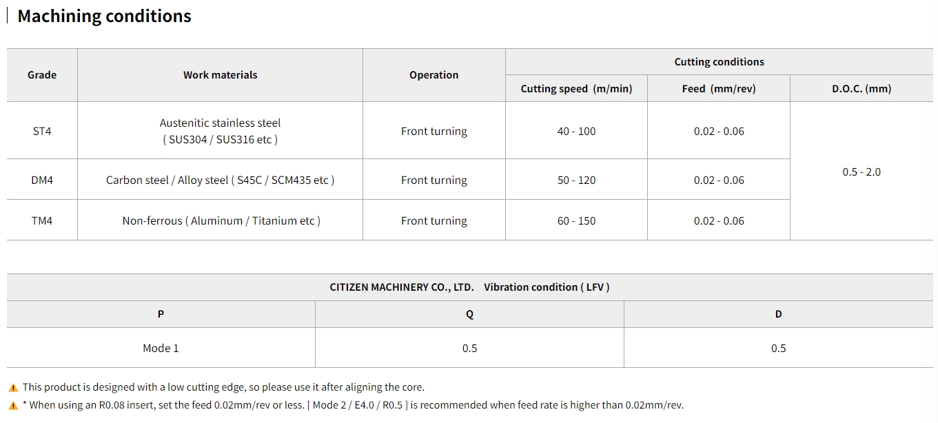 - ควบคุมลักษณะของเศษชิ้นงานได้อย่างดีเยี่ยมเมื่อตัดในลักษณะการตัดที่มีการสั่นสะเทือน