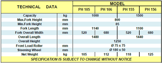 - ยกพาเลท ได้สูง0.8 เมตร จากพื้น