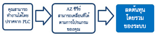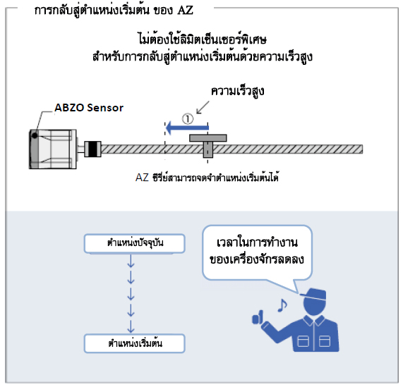 เมื่อ ABZO เซ็นเซอร์ซึ่งถูกพัฒนาขึ้นใหม่ได้ถูกติดตั้งเข้ากับมอเตอร์ ทำให้ไม่จำเป็นต้องใช้เซ็นเซอร์ภายนอกและสามารถกลับสู่ตำแหน่งเริ่มต้น (Home Position) ได้ด้วยความรวดเร็ว และด้วยไดรเวอร์ชนิดมีคอนโทรลเลอร์ในตัว (FLEX) ทำให้สามารถเชื่อมต่อกับระบบต่างๆได้หลากหลาย