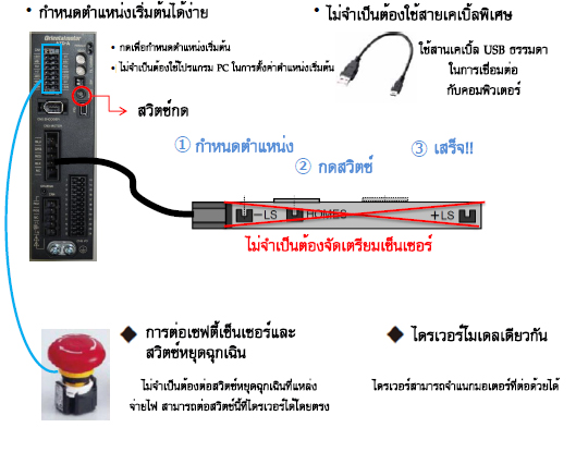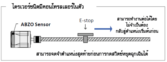 • ถูกติดตั้งกับ ABZO เซ็นเซอร์ ถ้าคุณต้องการระบุตำแหน่งเริ่มต้น (Home position) คุณไม่จำเป็นต้องใช้เซ็นเซอร์ภายนอกสำหรับตำแหน่งเริ่มต้นนี้เลย