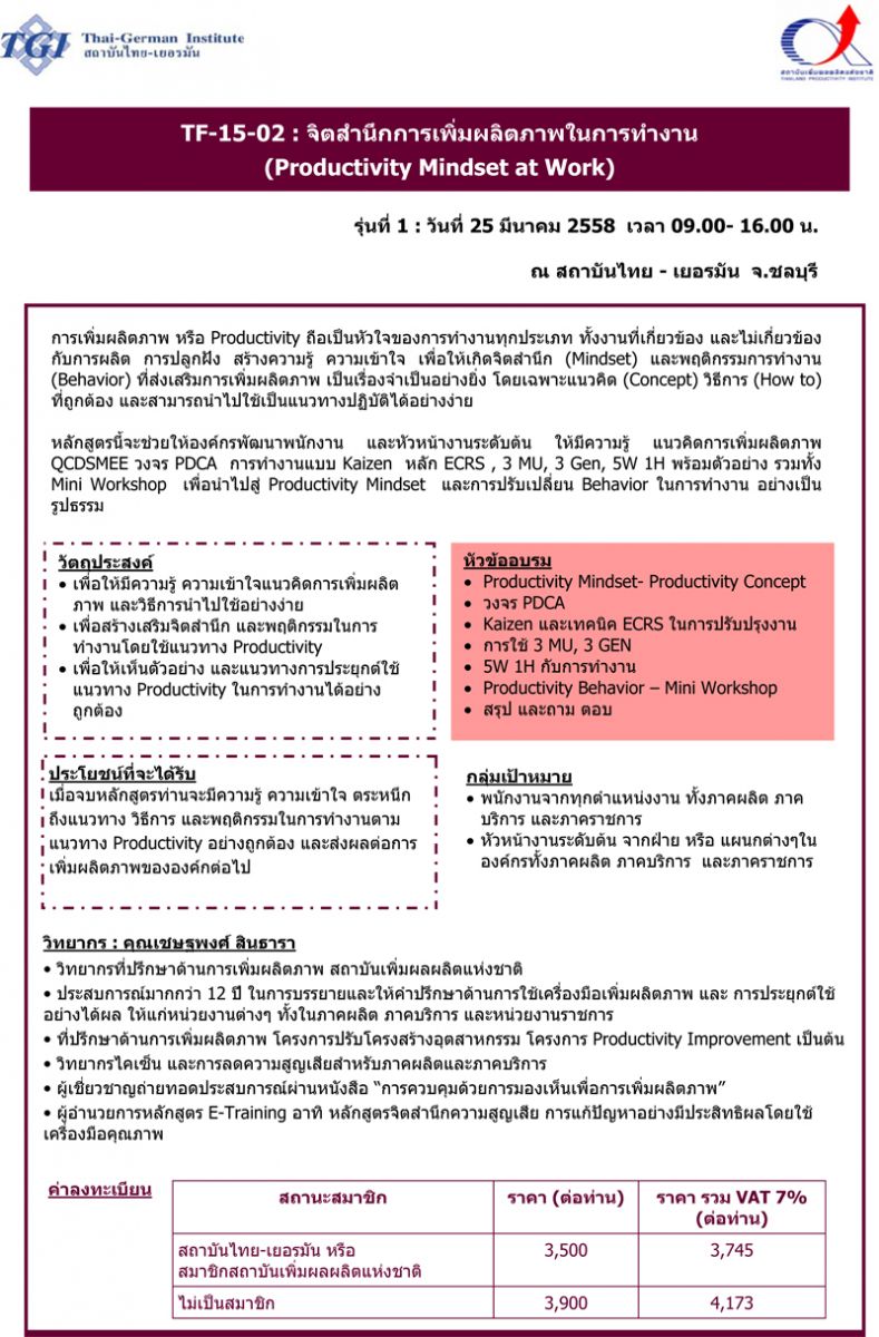 สถาบันเพิ่มฯ - กรีนเวิลด์ฯ “ชูจุดยืน เพิ่มศักยภาพการผลิต” ด้วยการจัดงาน Modern Manufacturing Forum 2014 เยือนนักอุตสาหกรรมปราจีนฯครั้งแรก